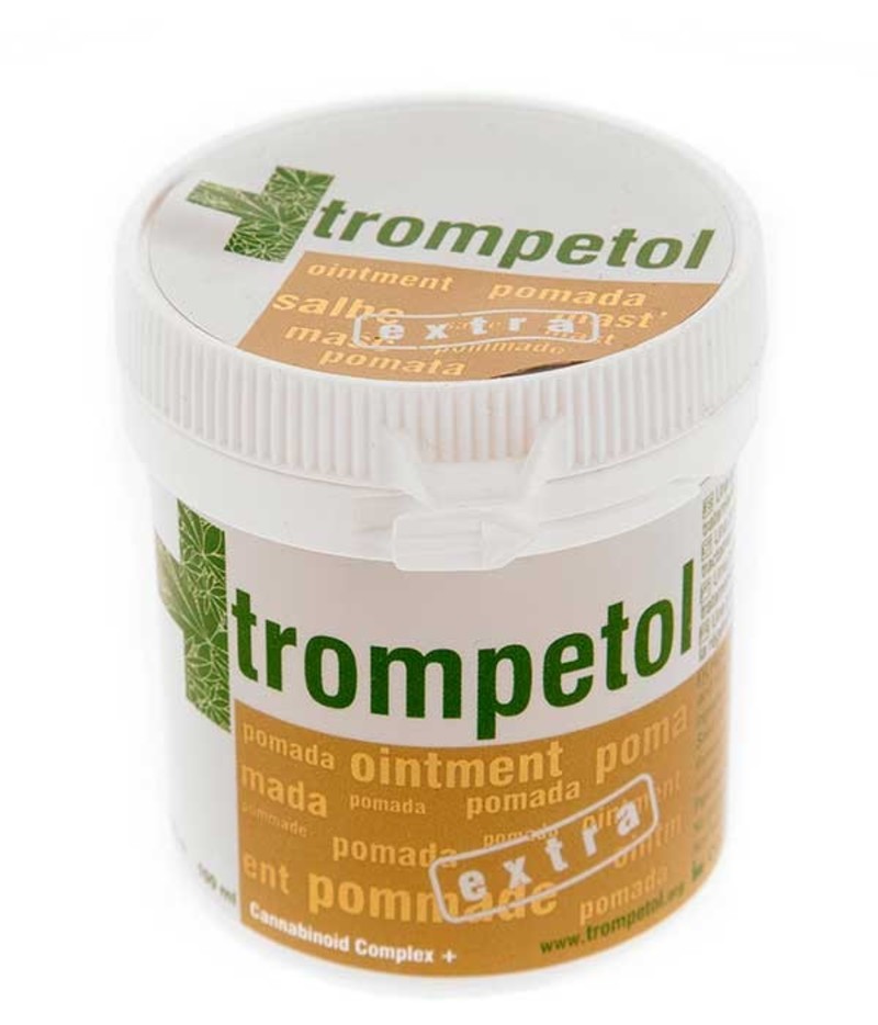 This tub of Trompetol ointment Extra, contains a higher dosing of CBD than the classic version. Making it ideal for topical application with the motivation of soothing muscle pains such as joint aches or tendon pains. The higher CBD percentage allows a more powerful topical penetration of the CBD to deeper affected areas of the tissues, for this reason, any application to the skin regarding skin issues (dryness, irritation, acne, herpes, eczema,etc.) should be light and delicately massaged onto the affected area.