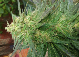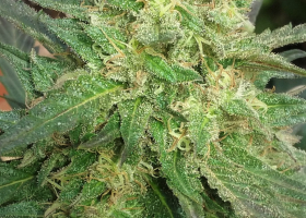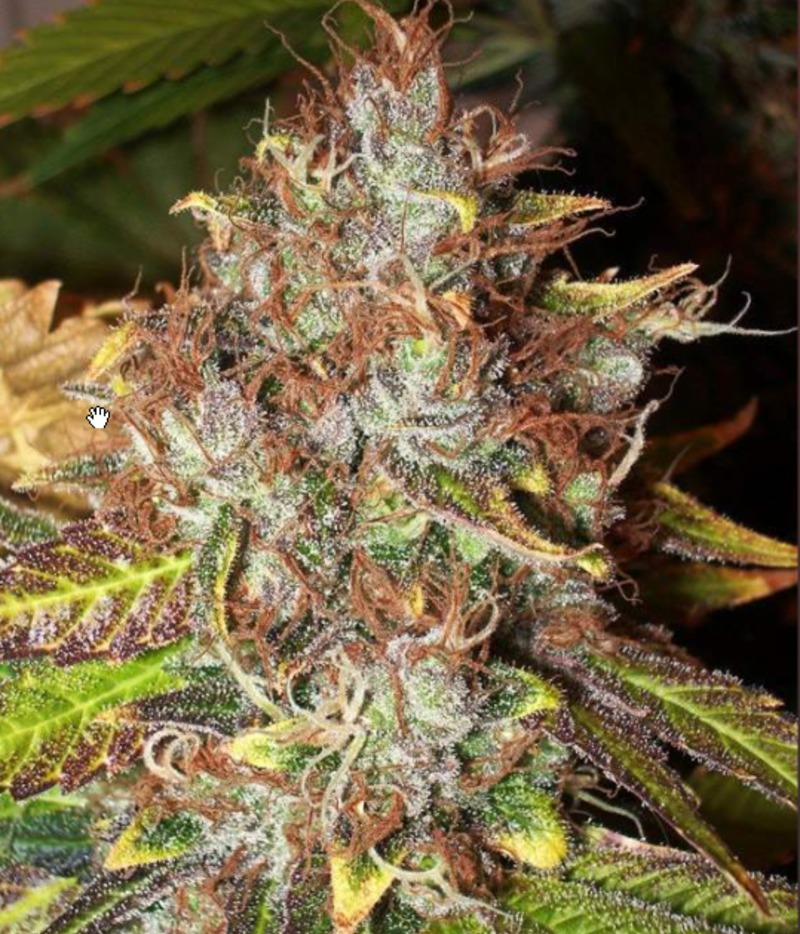 Thirstiest plant I have grown in 35 years ! Leaves turned purple at maturity, possibly due to cold nights. Very strong branches that hold the weight of buds well. This plant had the unusual ability to turn her leaves perpendicular to the sun, notably in the morning and in the evening. Needs only moderate/light feeding, a typical Mandala trait. Buds smell like pine/mint/apple with a hint of chocolate, that are very dense and you will need good ventilation and/or a fan blowing in the drying area to prevent problems. Effect is extremely clear, lucid, very creative and happy. All negative thoughts will be banished, a smile will be constantly on your face and she is perfect for philosophical conversations. There are absolutely no negative effects as can be sometimes associated with strong Sativas. Sunglasses may be needed to hide your drooping eyelids ! Great party buzz that is plenty strong, but not overwhelming and causing you to sit in a corner completely spaced out. Later, munchies will be unavoidable and you will sleep like a baby, waking relaxed and with no "hangover". Ideal social strain as it causes extroversion, so good for shy people. Very up-beat strain and highly recommended. Take me to the party !!
