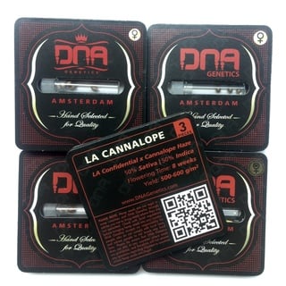 LA Cannalope de DNA Genetics nace de la unión entre la LA Confidential y la Cannalope, lo que ha permitido obtener un híbrido Sativa/Indica bien equilibrado, muy productivo, de floración corta, con el rico aroma de la LA Confidential y muy potente.Su aroma y su sabor son penetrantes y muy agradables, con notas de limón y de carburante Diesel. El efecto es potente, bien equilibrado, físico y mental.LA Cannalope admite un aporte importante de nutrientes con el fin de desarrollarse en las mejores condiciones y de obtener las mejores cosechas.