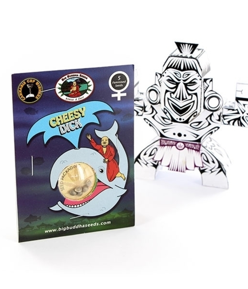 Esta variedad es un asombroso cruce entre la Moby Dick (magnifica variedad creada en España, que se caracteriza por sus enormes cogollos con un alto contenido en resina) con la clásica Big Buddha Cheese. El gracioso nombre sugiere que es un cruce un tanto cómico, pero el resultado ha demostrado que se trata de una planta de enormes cogollos y un aroma ‘old skool’ para el más serio de los plantadores. Cheesy Dick es una planta de dominancia índica, muy especiada y con el sabor picante de la Big Buddha Cheese con un alto contenido en resina.